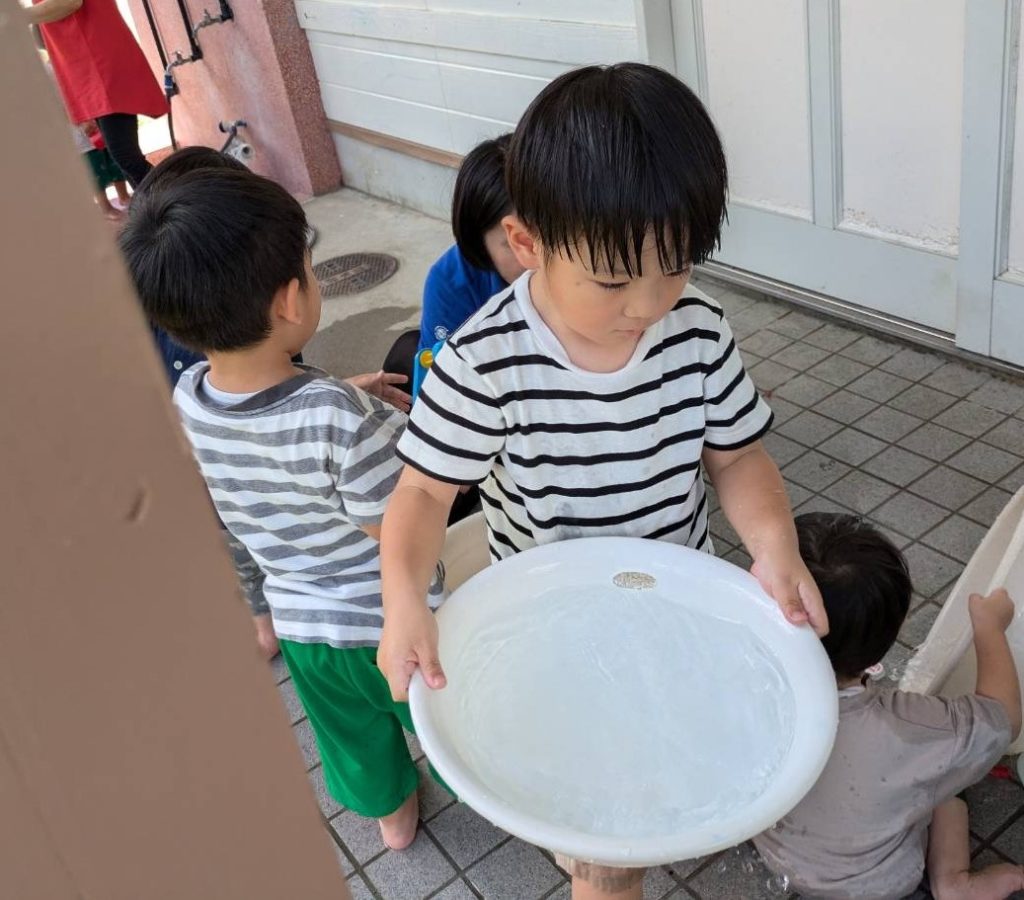◎水遊びは手先の器用さを作るには最適な遊びです。