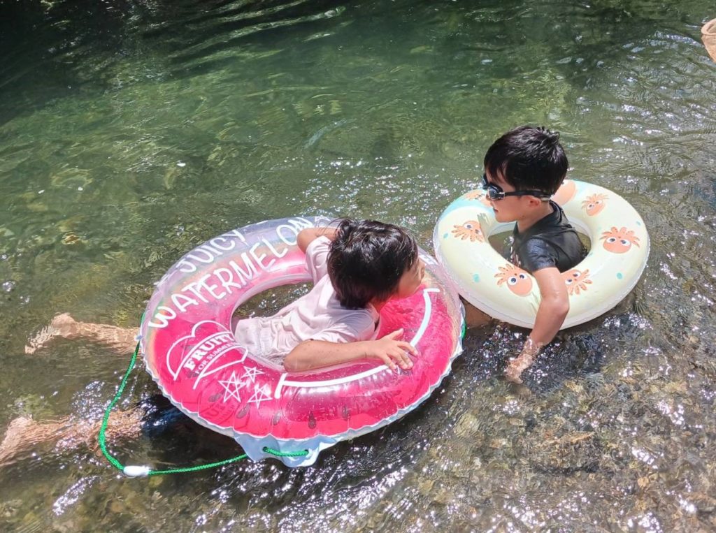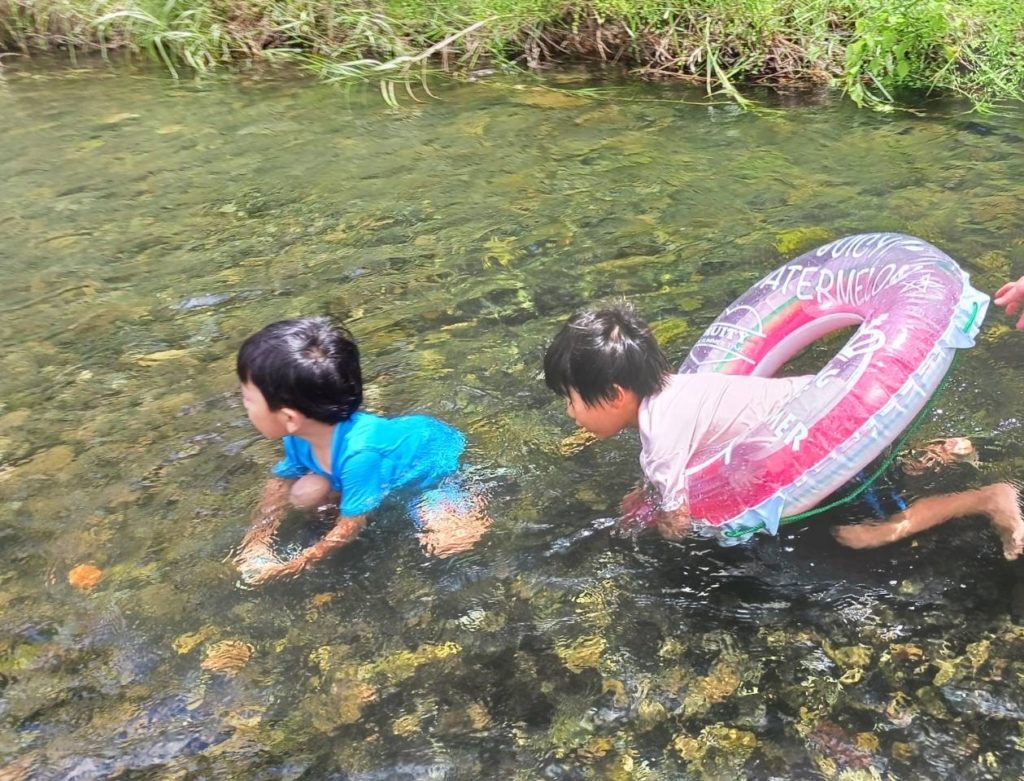 にじぐみさんは親子で川遊びに行きました。