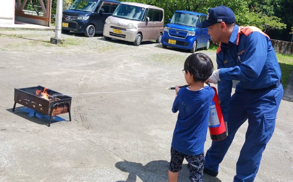 にじぐみ:火災の避難訓練で、消防署の方の立会いの下消火訓練も行いました。