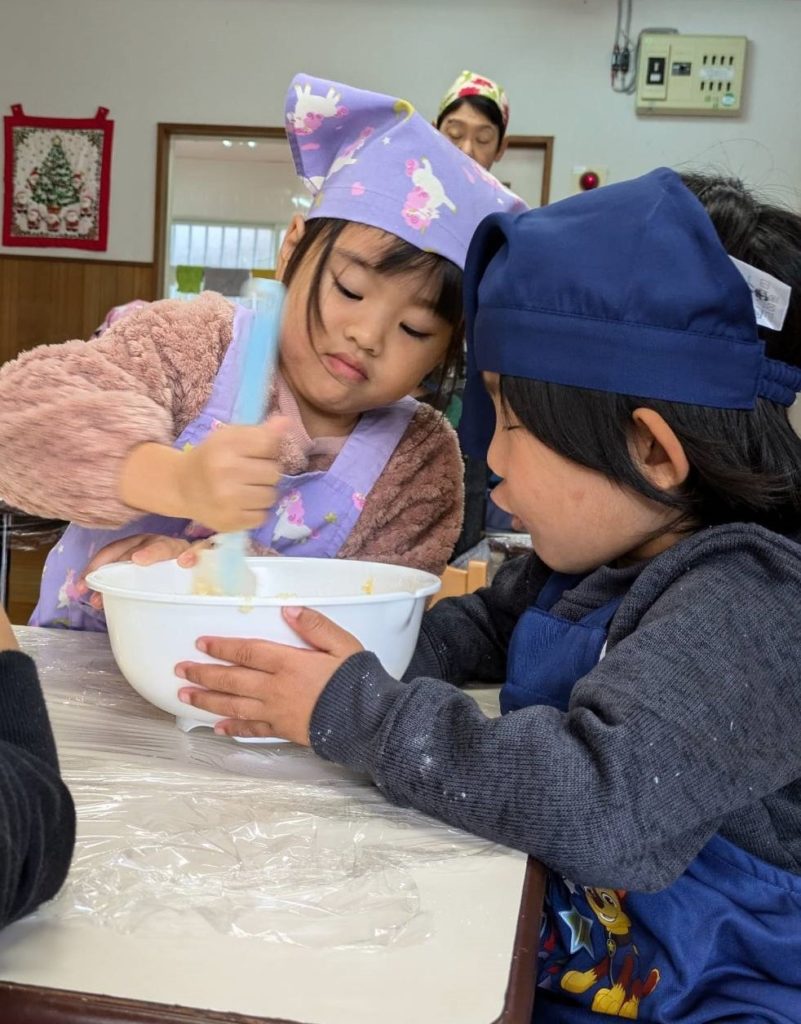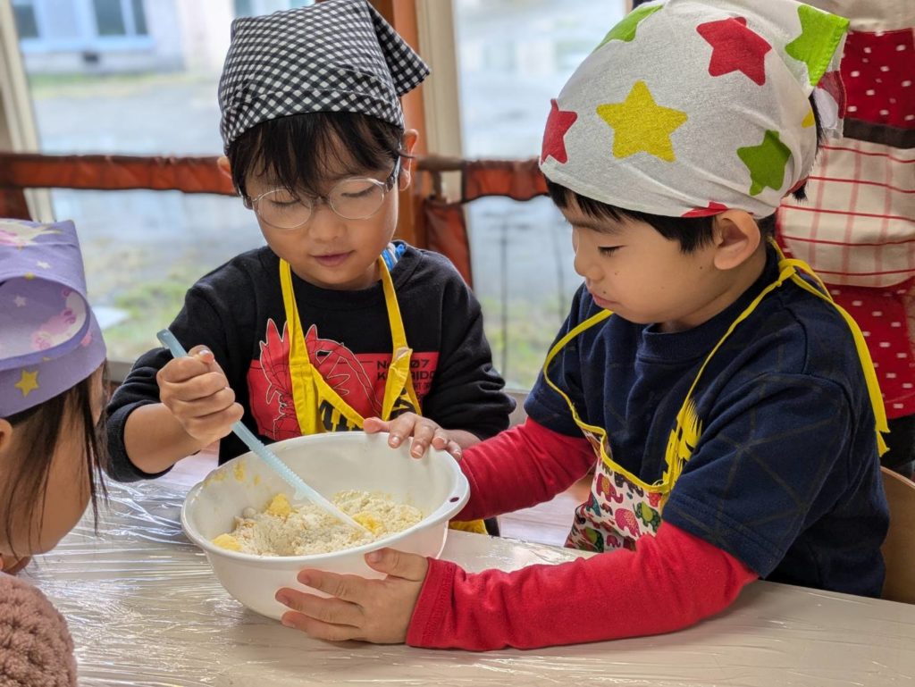 ☆クリスマス会の前日にプチケーキの飾り用のクッキーを作りました。2回目だったので慣れた手つきで上手に出来ました。