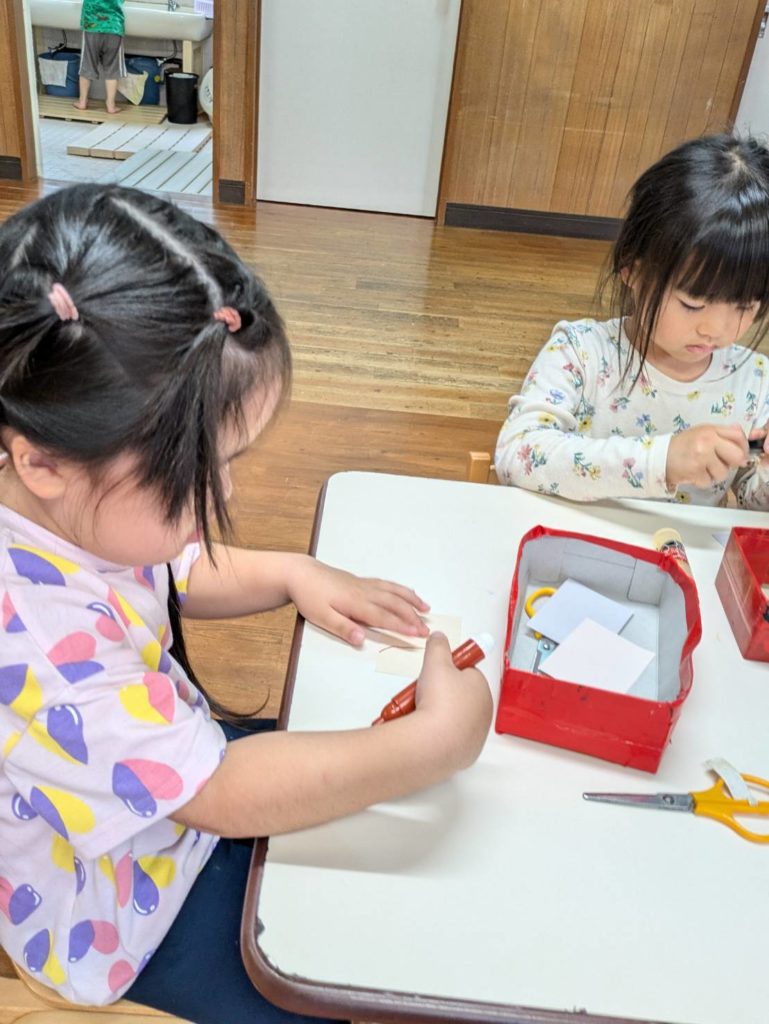 おひさまぐみもにじぐみも製作は大好きです。